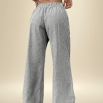Seja estilizadas de forma casual ou combinadas de forma chique, estas calças oferecem o equilíbrio perfeito entre luxo descontraído e feminilidade moderna.